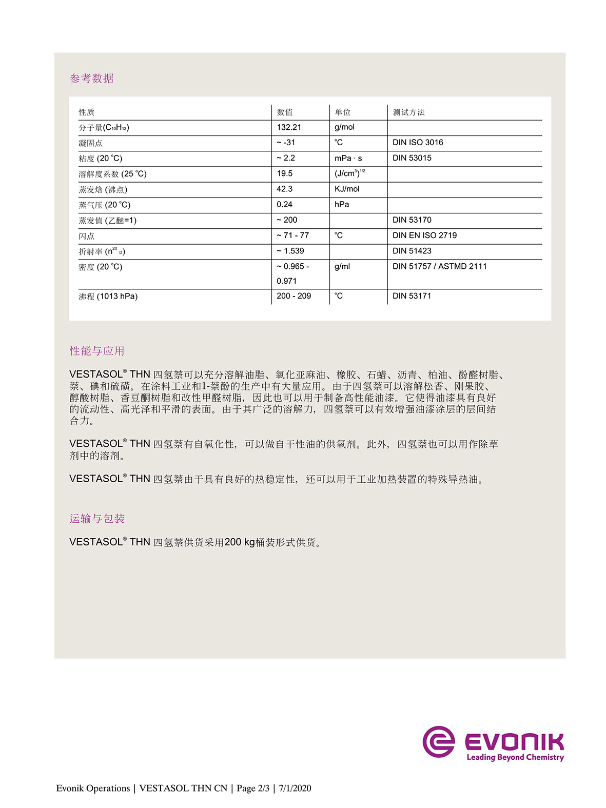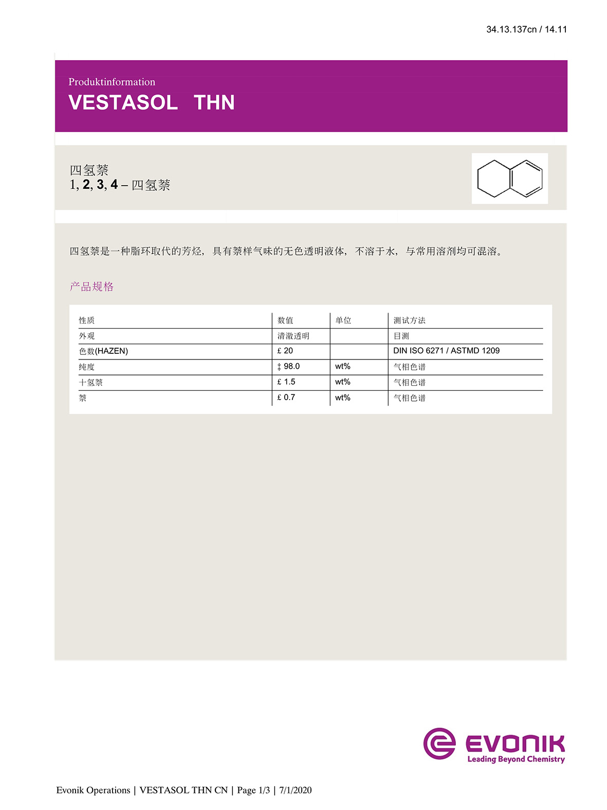 Product character:The naphthalene-like smelling, colour-less liquid is unsoluble in water and miscible with all common solvents.
